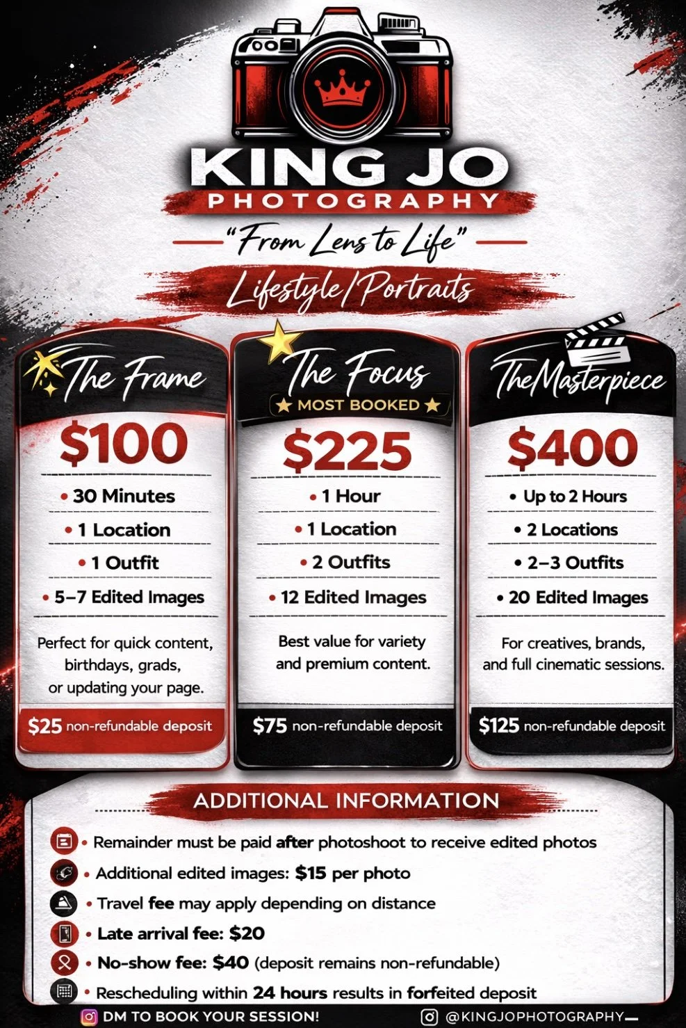 Experience a lifestyle photoshoot service that brings your story to life. Capture your cherished moments with King Jo Photography’s expertly curated packages.
